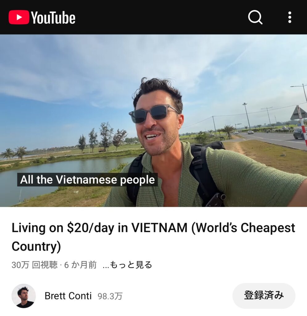 上述したが、旅系ブログYouTubeがおもしろい。特におすすめのYouTuberは「brett conti