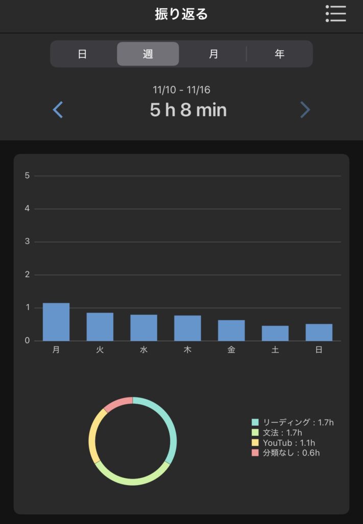 あと学習時間の向上、今週はちょっと少なかったかなぁ。言い訳はやめたい。